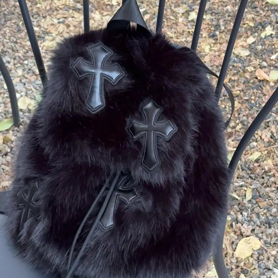 Velvet Sin Fuzzy Cross Backpack