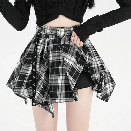 Increase quantity for Heartcore Buckled Plaid Skirt Khaki / S