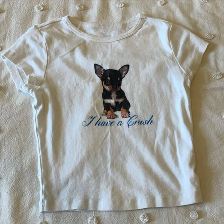 Increase quantity for Puppy Crush Crop Top WHITE / M